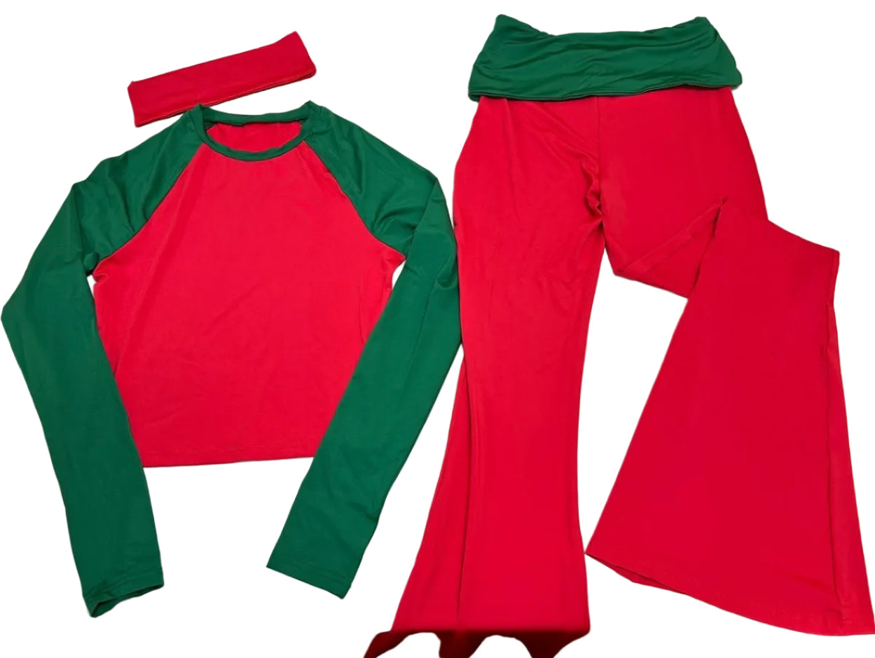 Three piece long sleeve two toned shirt with flip down pants , long bell bottom