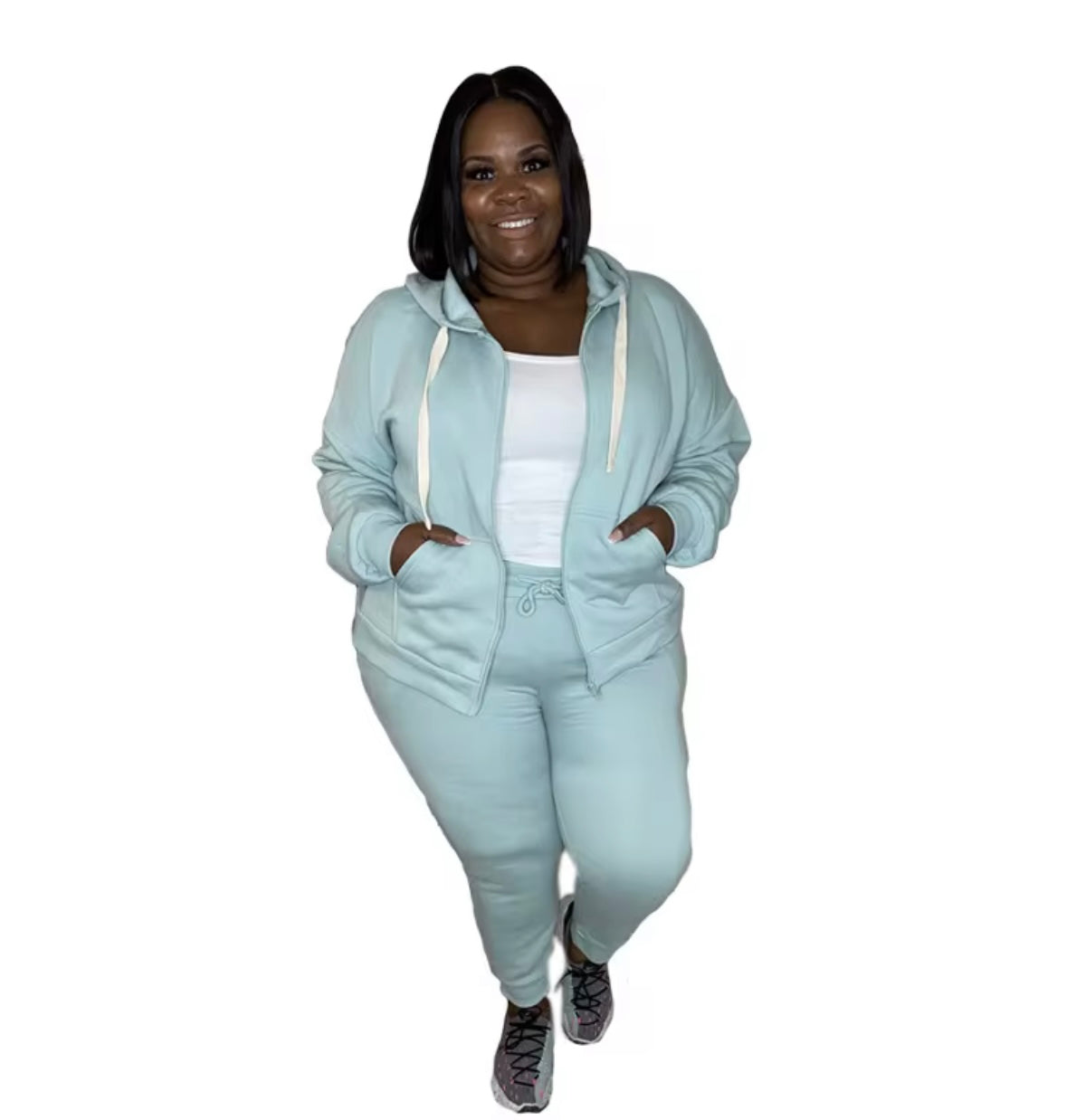Jacket with zipper and hoodie , string hoodie, with sweat pants , tie pants
