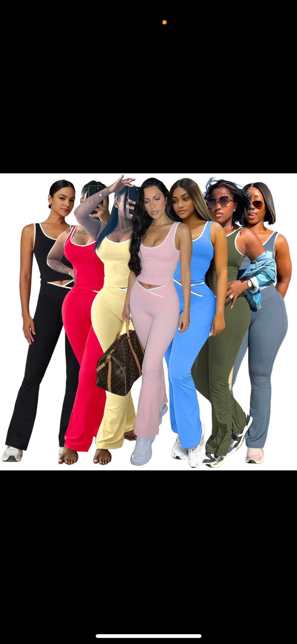 Two piece bell bottom leggings with short sleeve tank top , stretchy