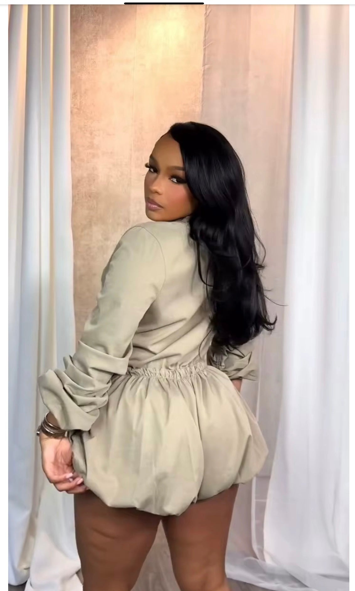 Long sleeve short , puffer shorts, one piece jumpsuit with waist string
